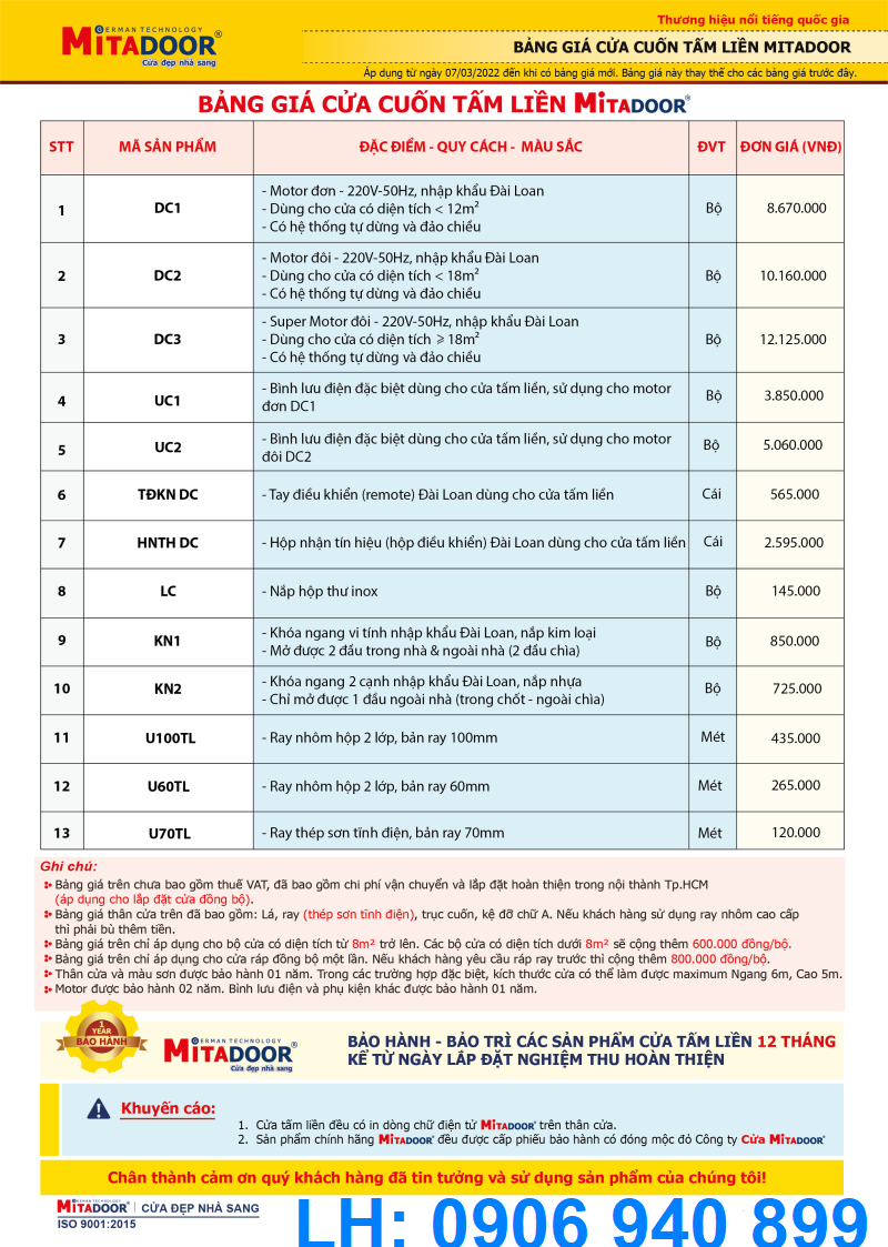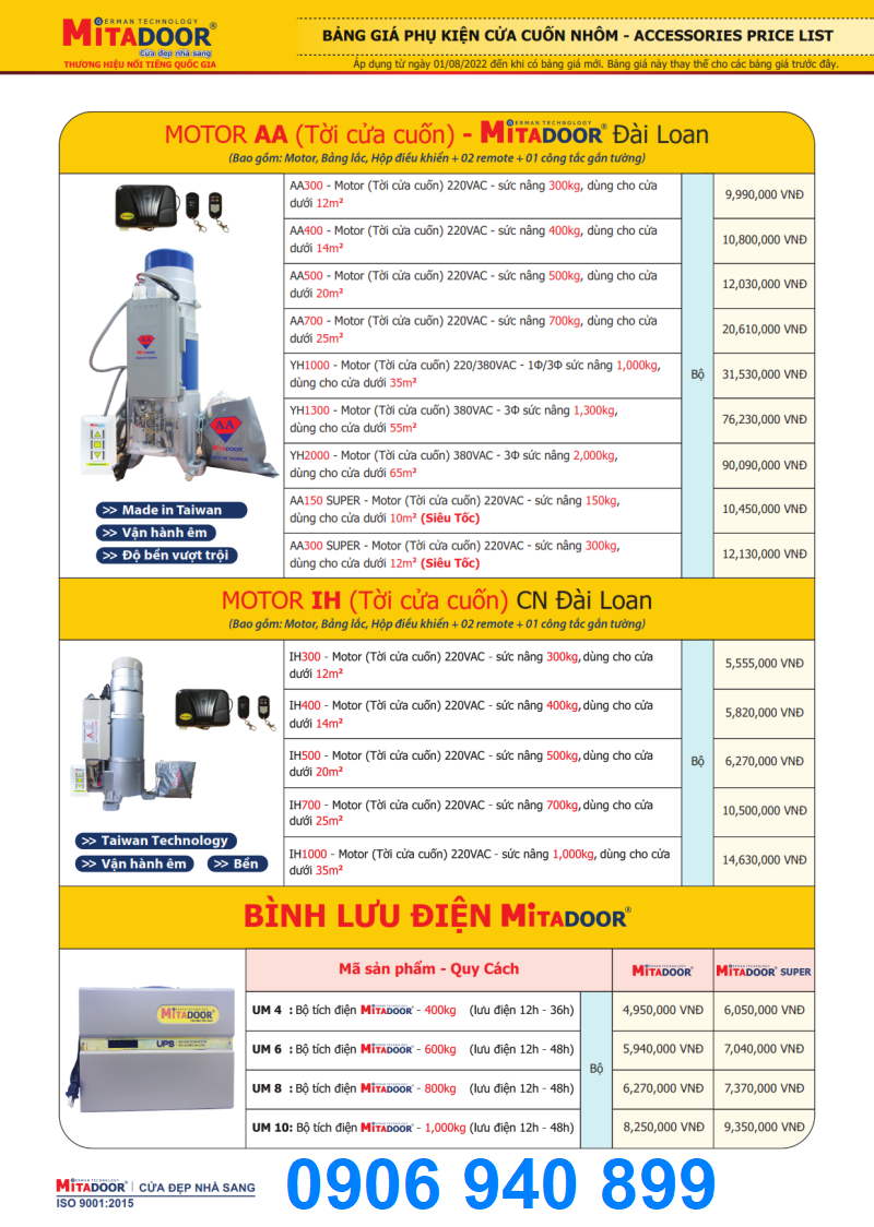 Bảng Giá Motor Cửa Cuốn Mitadoor Chính Hãng