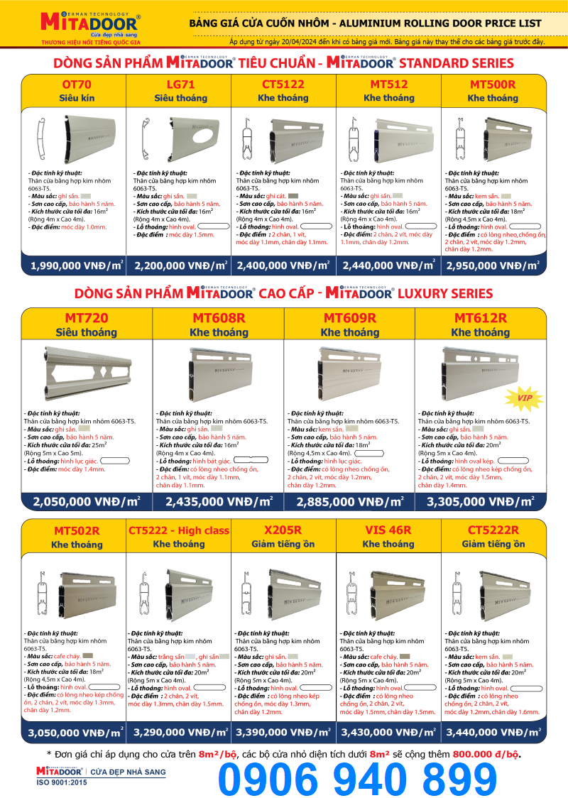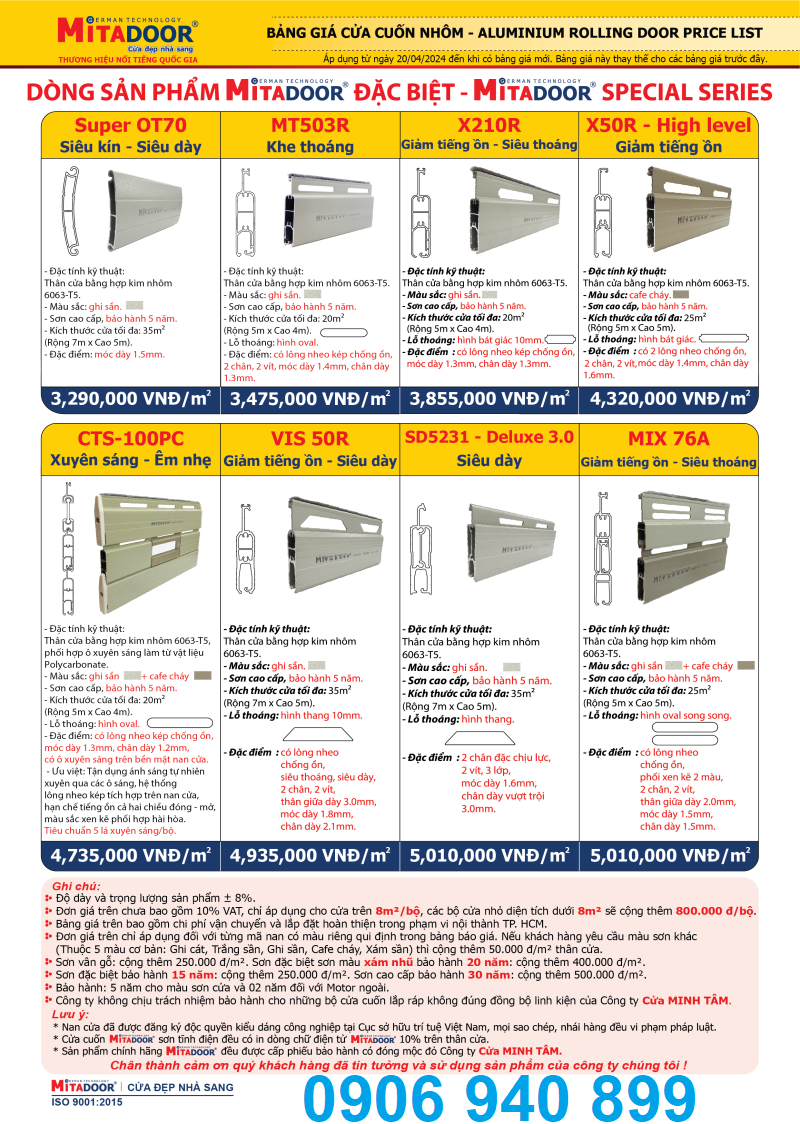Bảng Giá Cửa Cuốn Nhôm Mitadoor
