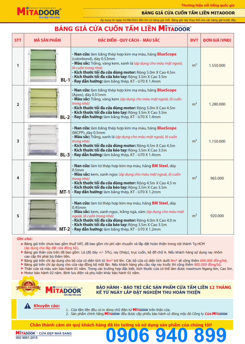 cửa cuốn úc mitadoor BL-2 dầy: 0.51mm giá 1.280.000đ/1m2 giảm 10% còn : 1.152.000. lắp đặt hoàn thiện.