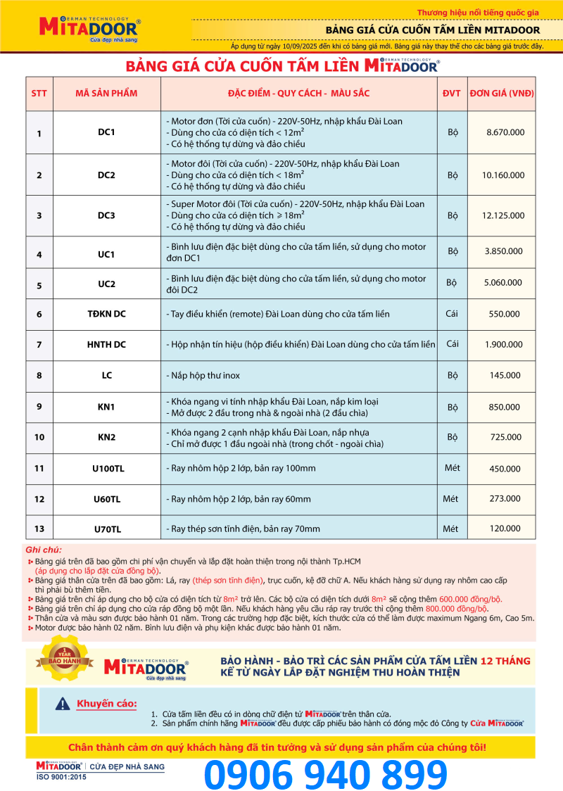Bảng Giá Motor Cửa Cuốn Mitadoor Chính Hãng