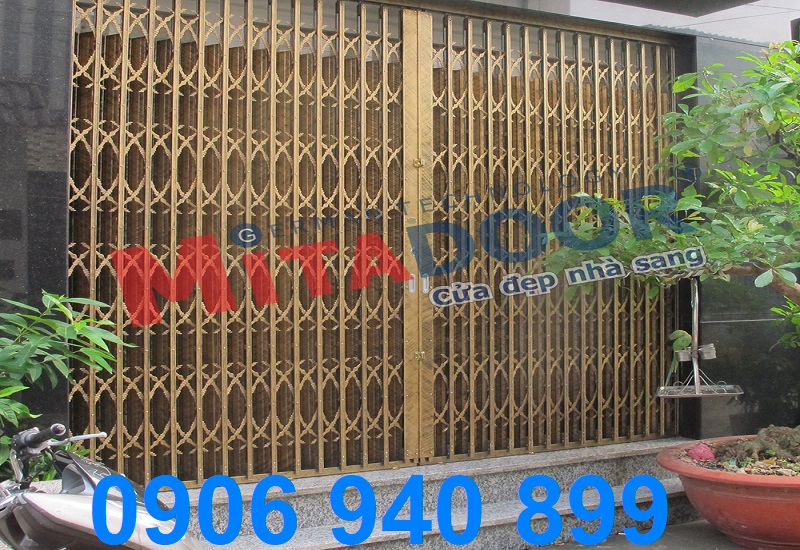 Thân cửa kéo Mitadoor được làm bằng thép sơn màu đồng.