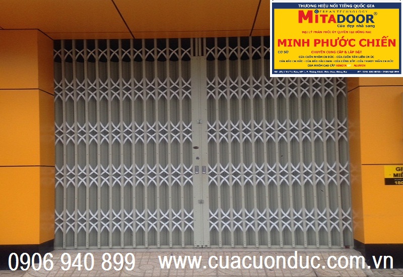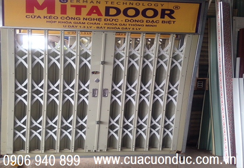 cửa kéo thép mitadoor U dầy 1.3 ly giá: 1.485.000đ/1m2, lắp đặt hoàn thiện.